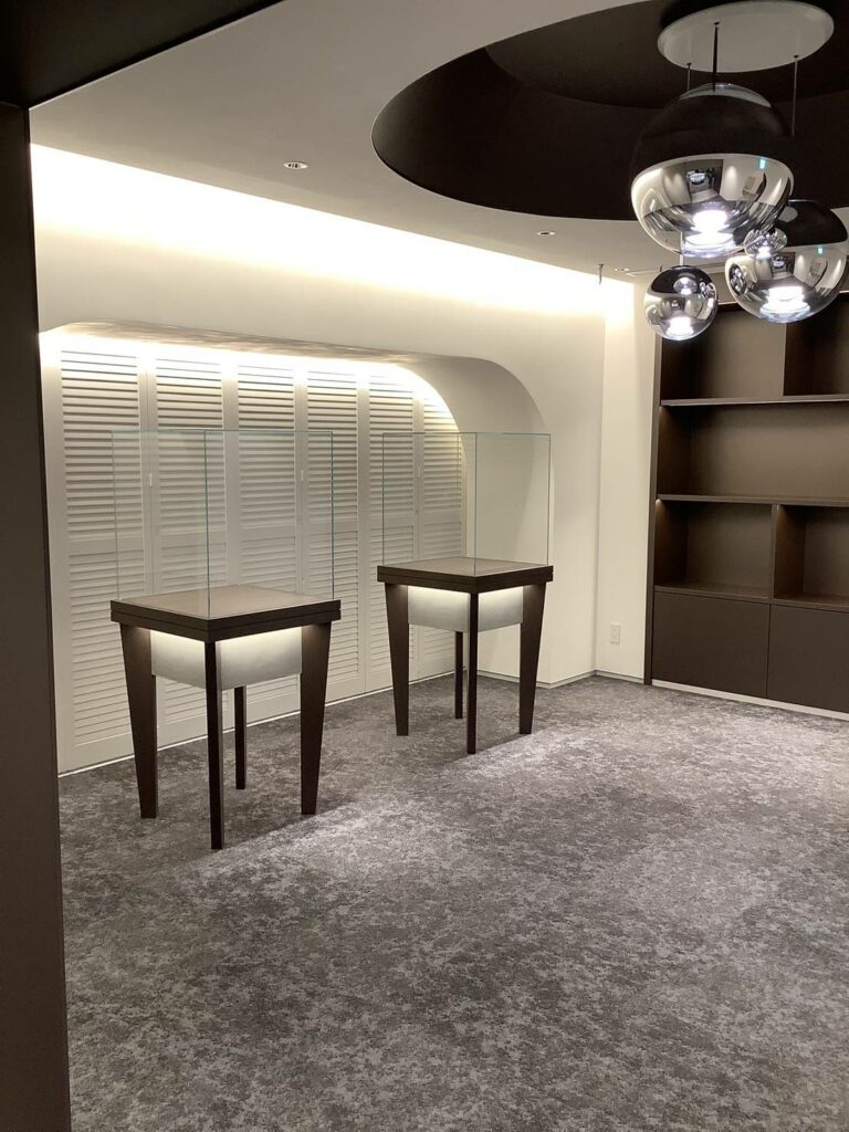 銀座MIWA様の什器製作納品をさせて頂きました。2025年4月にGINZA M TOWERがOPEN。歴史ある貴金属・宝石専門店。ダイヤモンドエンゲージリングに、親子で受け継ぐことが出来る本物の高級天然石ジュエリー、本当にどれもが素敵すぎます♪